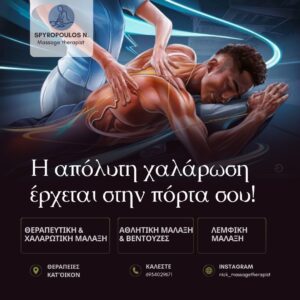 Μάρτιος 6, 2026 στο 11:46Το μασάζ στα χέρια του κυρίου Σπυροπούλου φοβερό…ξεκουράζεσαι και χαλαρώνεις μετά από μια δύσκολη μέρα στην δουλειά…είναι ο ορισμός της χαλαρωσης